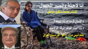 الإنسان كرمه الله لماذا نهينه نلجأ إلى أساليب تضعفه تنفيه تدمر أحلامه طموحه حياته من هنا اقتنص الشاعر عصمت شاهين دوسكي بدقة متناهية مشكلة اللجوء فالشاعر صورة لمجتمعه لشعبه لزمنه وربما يتنبأ بقصائده لمستقبل ويوحي أيضا ويرشد من خلال صوره الشعرية ويوجه من خلال رموزه ودلالاته وأدواته وتشبيهاته والاقتراب من هذه المضامين تحتاج إلى متابعة وتأويل ،هناك قصيدة جميلة وبعطر مميز وأحاسيس مختلفة في قصيدة ” أنا لاجئة للشاعر عصمت شاهين دوسكي ” التي جسدت واقع اللجوء إلى دول عديدة رغما عنهم للبحث عن وطن آخر فيه الأمان والسلام والعيش الكريم بدلا من وطنهم الذي أنهكه الحروب والدمار والخراب والفساد والجهل والجوع وتصرفات الحكام أضرت بالمواطنين وغيرت كل شيء خاصة بالفرد