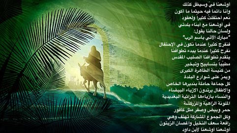 لمناسبة عيد السعانين (أوشعنا) الذي يصادف يوم الاحد القادم 28 اذار2021بريخا دكوليهن غديداي ومشيحاي ببغديدا و بعراق وبكو له ألما بأربع فنيون دعولمو أوشعنا فيّ وأنا في أوشعنا أوشعنا فيّ وسيظّل كذلك وأنا دائما فيه حيثما ما أكون نعم أحتفلتُ كثيراً ولعقودفي أوشعنا مع أبناء بلد تيولسان حالنا يقول:”مبارك الآتي باسم الرب”فنفرج كثيرا عندما نكون في الاحتفال نفرح كثيرا عندما يبدء تطوافنايتقدم تطوافنا الصليب المقدس مطيًباً بتسابيح وتبخير من كنيسة الطاهرة الكبرى ويمرّ على شوارع البلدةكل جماعة حاملة بنديرها الخاص والاطفال يرتدون الازياء البيضاء والنساء بأزياءها التراثية البغديديةالملونة الزاهيّة والمزركشة حمر وبيض وصفر مثل كافوروكل الجموع المشاركة تهتف وهي رافعة أغضان النخيل والزيتون أوشعنا أوشعنا لأبن داود وترتل طول المسيرة أناشيد المسيحي بهذا اليوم مسرور فقد بُشرَ بالفصح والفرح والنور فعيد السعانين قد زادت محاسنهعن كل عيد اتي بالكتب مسطور داود في هذا اليوم منتعش بكل ما قال في سفر المزامير فتمرّ الجموع الفرحة على العديدمن الكنائس مارزينا ومار كوركيس خلال المسيرة لتقرع نواقيسها وعند وصول الموكب الى كنيسة مار يوحنا تتوقف الجموع لتستمع وبخشوع الى فصل من الانجيل المقدس للمناسبة يتلوه على مسامع الشعب المطران ثم بعدها تكمل الجموع مسيرتها الى كنيسة الطاهرة الكبرى حيث أنطلقت ومن بعدها تتفرق الجموع لتكمل يومها بعد أن شاركت جمهور البلدةوشاركت الكنيسة فرحهامعلنة الفرح بدخول مخلصنا اورشليم فتعال يا يسوع الفادي وأدخل أورشليمي ونقِّهُ وحضّرهُ لكي ما يستحق الفرح السرمدي وخذه معك ليفرح الابدية بقربك فيا يسوع فاديّ ومخلصي كنت وسأظل معك بالأمس واليوم وغداً ولن أفارقك قط هو أحتفال في القلب نابع من أيمان ثابت توارثناه جيل بعد جيل ونعكسه ببساطة في مهرجان نعم مهرجان للفرح فرح الصغار والكبار وكل الاعمار نعم فرح قدوم مخلصّنا وفادينا فلن نفرش الارض فقط لكولكن سنفتح قلوبنا لتعبر وتدخل أليها وفيها ومنها تكمل مسيرة دخولك لنفرح بعد أن شهدنا وشاهدنا مشهد قدومك المتواضع البسيط أيّها الملك السماوي الضابط الكلف لنجعل أيامنا أخوتي كلها أيام فرح وتهليل وتمجيد ربنّا وألهنا ومخلصنا الذي به وفيه ومعه سنملك من الان والى أبد الابدين وبهذا يكون أوشعنا فينا ومعنا أبداّ فمبروك لنا جميعا أخوتي أينما كنتم نعم مبروك لنا كلّنا أوشعنا الى الابد.
