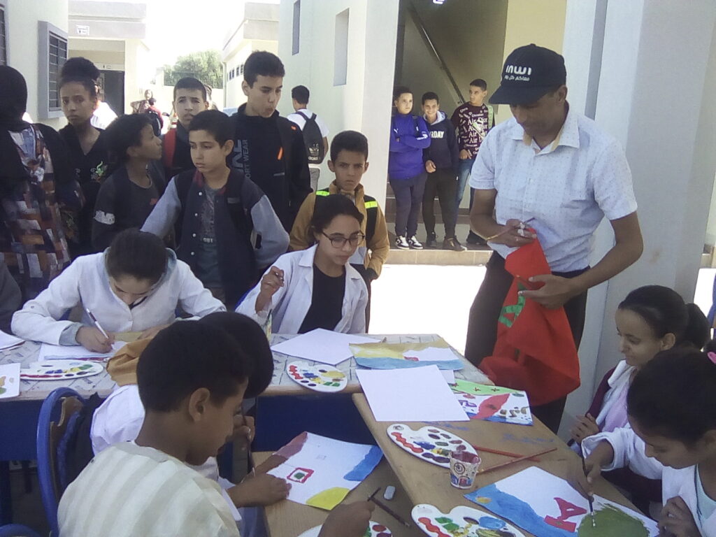 فضاء المؤسسة عرف تأطير ورشة فنية تألقت فيها الصباغة والابداع،تم خلالها رسم لوحات فنية تعبر عن تجدر القضية الوطنية في كل فئات المجتمع ،