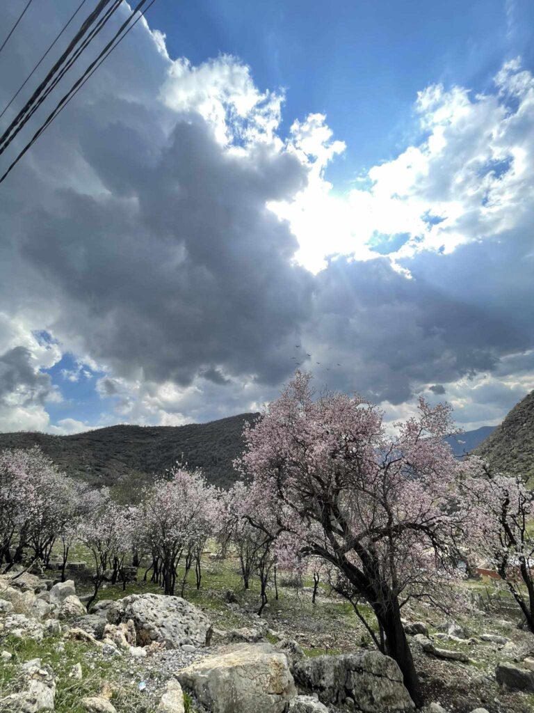 وَأَشْجارُ لَوْزٍ كَفُسْتانِ عُرْسٍ