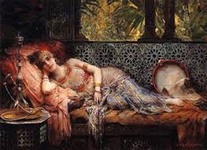 Elle glissa ses douces mains blanches aux ongles couleur de fraise sur son beau corps harmonieux, bailla légèrement, recouvrant sa bouche de la paume de la main, et balaya de l’autre les mèches rebelles de ses longs cheveux noirs de jais, de sorte qu’elles se reposent sur ses épaules, qui se soulèvent de soulagement sous la fraîcheur de la brise. Elle se glissa hors de son lit, heureuse, les rêves de la nuit bouillonnant en ses tréfonds. Elle semble lasse, du manque de sommeil, car elle a veillé si tard.